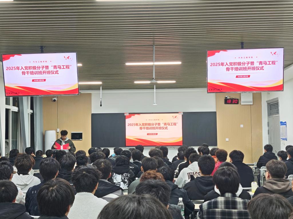 (通讯员 张领)为落实立德树人根本任务,加强大学生思想政治引领,10月29日晚,伟德体育在5504教室举行“青马工程”暨入党积极分子培训班开班仪式。学院党总支书记李霞、副书记李路、专职组织员梁军萍、学生党支部书记张琦、分团委书记曲杉出席,110名入党积极分子、入团积极分子及2025级团学骨干参加。