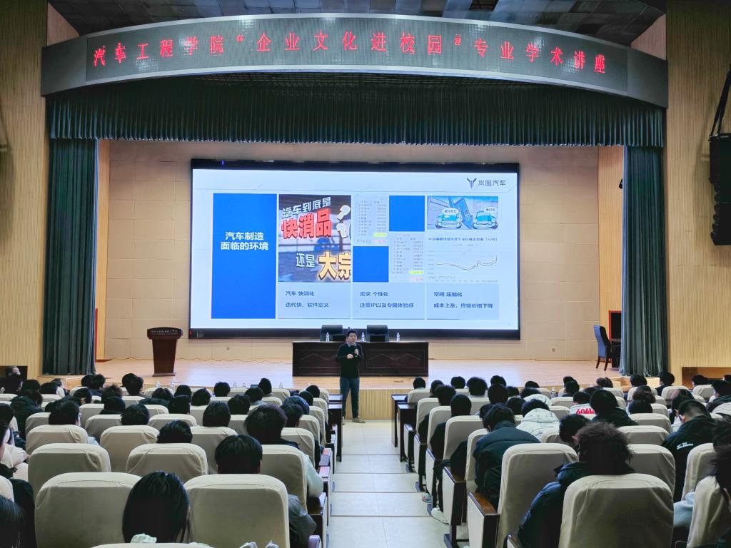 (通讯员李路)为进一步深化产教融合,引导师生了解行业动态,服务区域经济发展,伟德体育于12月5日举办“企业文化进校园”系列讲座。与学院长期以来保持紧密合作的企业——岚图汽车科技股份有限公司的两位资深专家应邀分别就汽车产业未来趋势与职场角色转换两大主题进行深度分享。院长赵艳杰主持活动,全院师生共同参与。